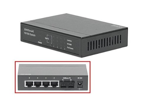Dexlan Convertisseur fibre optique + Switch 10/100 4 x RJ45
