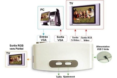Dexlan Convertisseur PC/TV Vidéo + S-Vidéo + RGB péritel