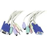 | ✚✚✚ Dexlan Rallonge cordon KVM VGA/PS2/Audio 5 m Cordon de rallonge pour clavier écran et souris et audio utilisable pour prolonger la liaison d'une console KVM PS/2 + audio ou éloigner l'ordinateur d'un poste de travail.Structure en un seul cordon combiné regroupant les liaisons écran VGA, souris et clavier à prises rondes miniDin 6 points et les prises audio microphone et haut parleur- Couleur de connecteurs normalisée PC99- Câbles à très faible perte et signal vidéo sur mini coaxial autorisant la haute résolution- Connecteurs pour écran VGA : prises bleue HD15 Male et Femelle- Connecteurs pour clavier PS/2 : prises violettes miniDin 6 Male et Femelle- Connecteurs pour souris PS/2 : prises vertes miniDin 6 Male et Femelle- Connecteurs pour microphone : Prises rose Jack 3,5 Stéréo Male et Femelle- Connecteurs pour Haut-parleur : Prises vertes Jack 3,5 Stéréo Male et Femelle ATTENTION Les longueurs supérieures à 5m requièrent parfois une amplification du signal