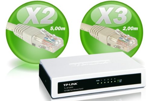 #Raccorder vos nouveaux ordinateurs deja équipes d'une carte réseau grâce a ce Kit de demarrage economique pour 5 postes.-Vous pourrez ainsi partager rapidement et le plus simplement du monde des documents de travail Word,-Excel, Powerpoint, utiliser une messagerie en commun ainsi que mettre a disposition de tous vos ordinateurs, des périphériques coùteux comme une imprimante, un disque dur externe...-Pour les joueurs, c'est le moyen le moins cher de se lancer dans des parties en réseau de leur jeu prefere.-Le Starter Kit Reseau 5 postes LaN PaRTY 2 est compose de :1 Hub Switch Ethernet TP-Link 5 ports RJ45 10/100 auto MDI-MDIX3 câbles RJ45 droit catégorie 5e d'une longueur de 2 mètres2 câbles RJ45 droit catégorie 5e d'une longueur de 5 mètres